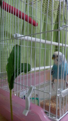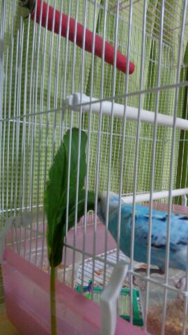 じいちゃん家に行ったので、庭にたくさん生える明日葉貰ってきて、青音ちゃんにあげてみた~!ちゃんと、ネットでインコが食べれるのか調べました。この前、キャベツあげてみようとしたら、食べれないものに入ってたので;危ない;近づきもしなかったので、良かった(笑)明日葉は、籠に入れたら遠巻きに見つつも、すぐ寄ってきて、つついてたので、これはいける!と思いました。その後、ちょこちょこ食べてました。青音ちゃんは、好きなものだと、すぐ寄っていくので分かりやすい。おもちゃも、最初すぐ近づくものはずっと楽しそうに遊ぶし。近づかないのは、2週間経ったら慣れて遊びだしたりします。それも、その後はずっと遊ぶんだけどね(笑)